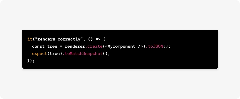 This code creates a snapshot of your component’s output and compares it to the previous snapshot. If there are any differences, Jest will alert you and ask you to confirm whether the changes are expected or not.